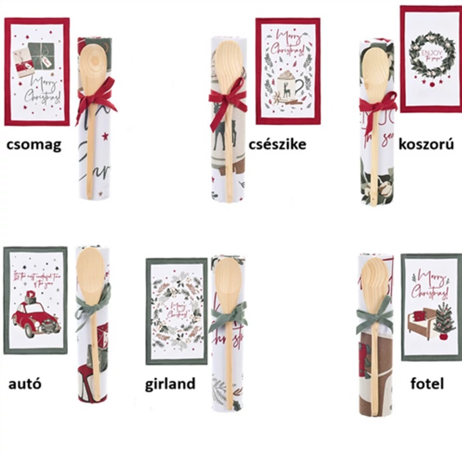 Ajándékszett: Pamut konyharuha 40x70cm fakanállal, Christmas is coming II. csomag, N.S.BLA251904B