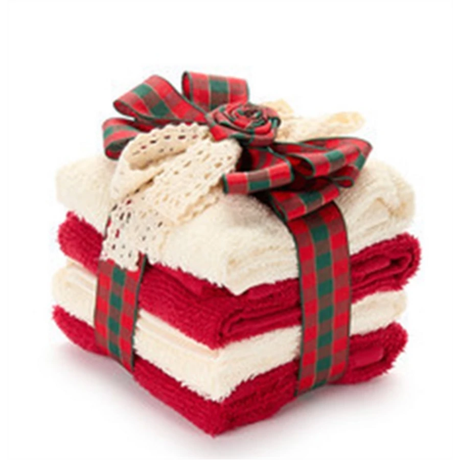 Ajándékszett: piros-krém kistörülköző 30x30cm, 4db, pamut, skótkockás masnival, N.S.ZBH231204