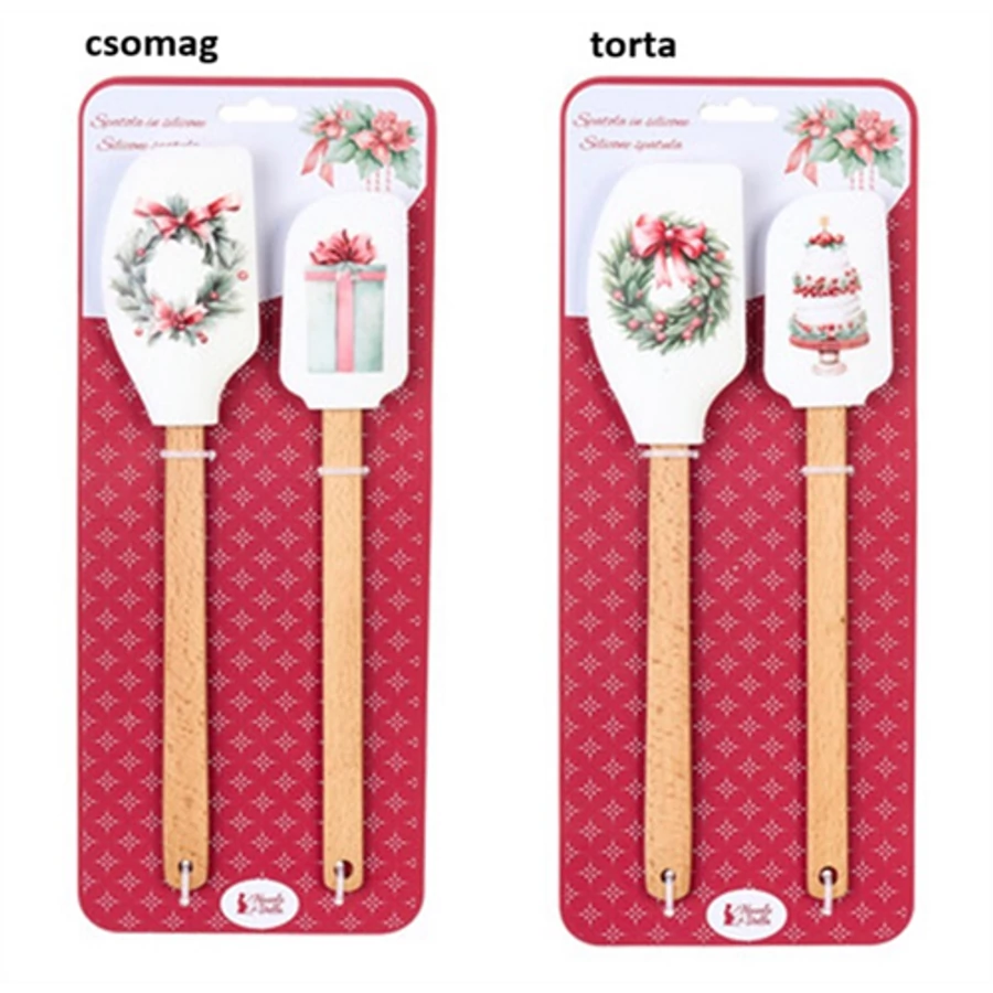 Ajándékszett:2 szilikonspatula fanyéllel 26/29cm, Storia di Natale torta, N.S.JHI251801A