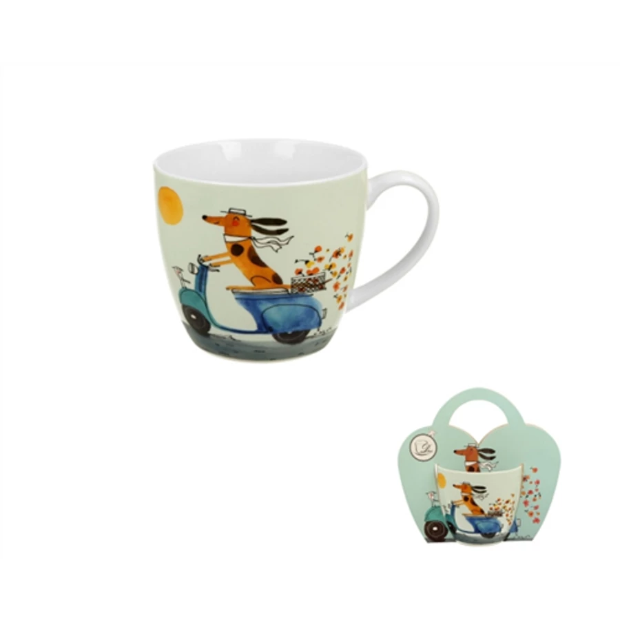 D.G.53838 Porcelánbögre 460ml, díszcsomagolásban, Dog on a scooter