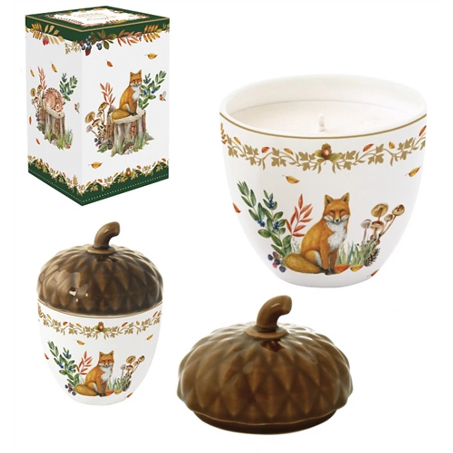Gyertya porcelántálkában fedővel, 8,5x12cm, dobozban, Forest Dream, R2S.1647FODR