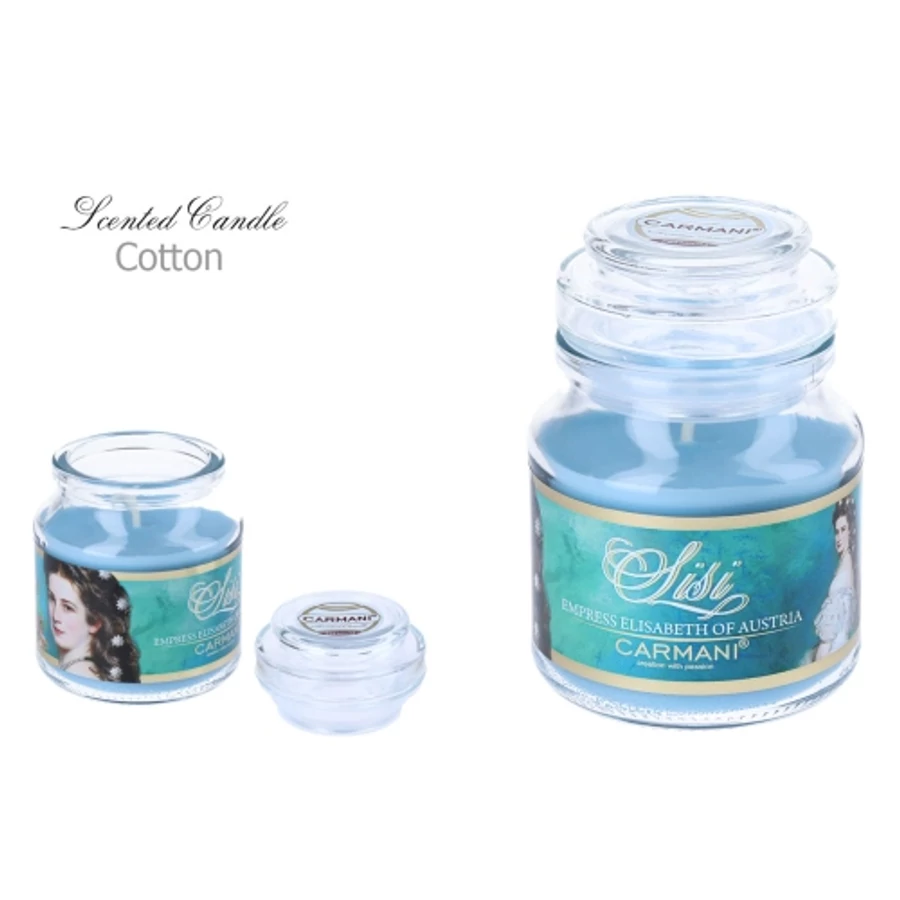 Gyertya üvegben, 135gr, 10cm, pamutvirág illat, Sisi, H.C.457-9101