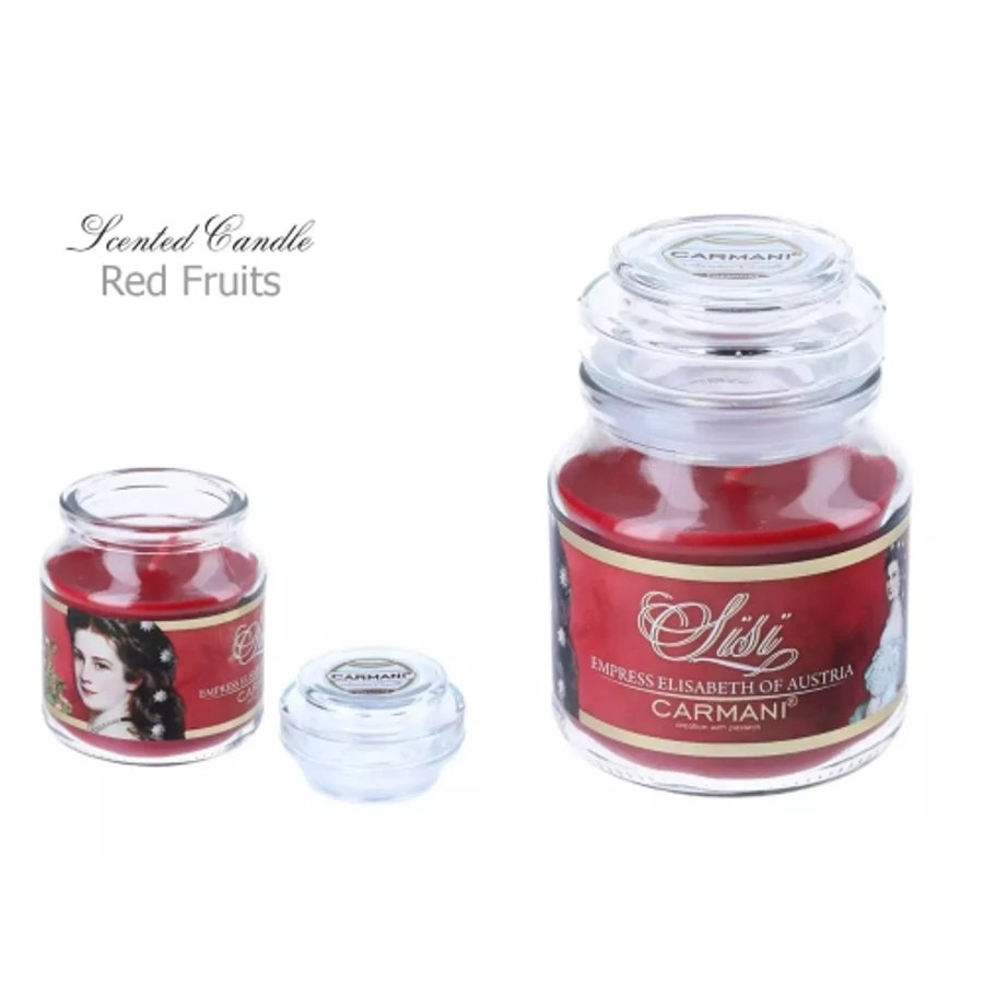 Gyertya üvegben 135gr, 10cm, red fruits illat, Sisi, H.C.457-9102
