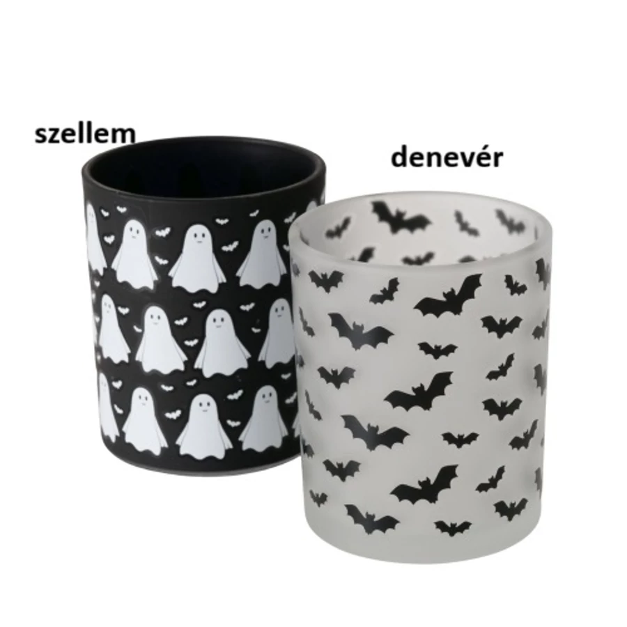 Halloween üveg mécsestartó fekete-fehér, 7x8,3cm, Ghostie, B.G.2058999