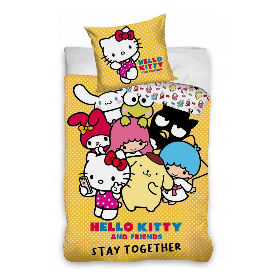 Hello Kitty ágyneműhuzat Anyaga:100% pamut.Mérete:Párnahuzat: 70x90 cmTakaróhuzat: 140×200cm