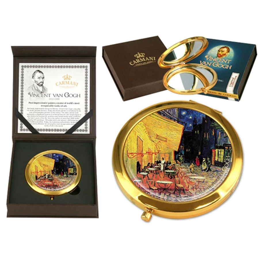 Kézitükör nagyítós, fémkeretben, dobozban, 11cm, Van Gogh: Kávéház éjjel, H.C.181-1304