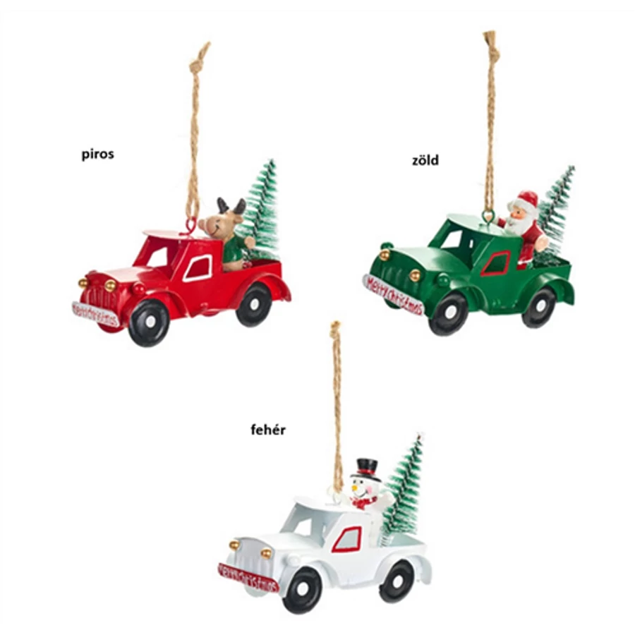 Merry Christmas autó 10x5x8cm, fém-műanyag függődísz dekorfigura, zöld, N.S.LWG251612C