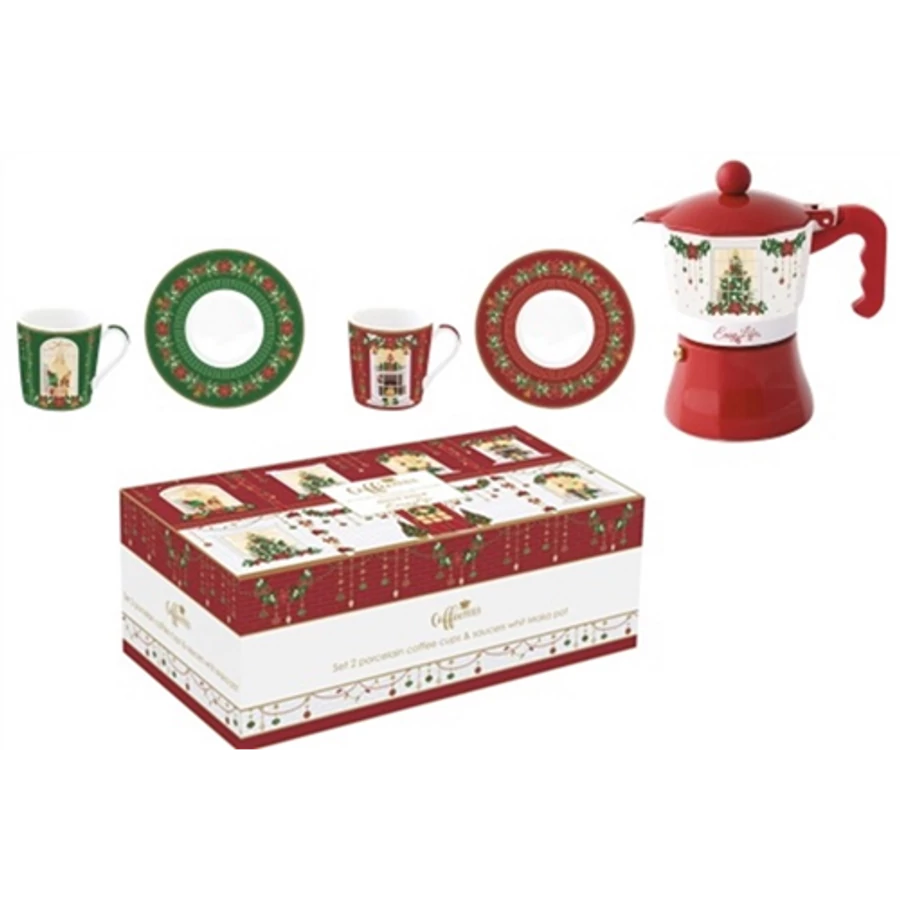 Porcelán eszpresszócsésze+alj 2 személyes, 100ml, kávéfőzővel, dobozban, Festive Avenue, Coffee Mania, R2S.134FEAV