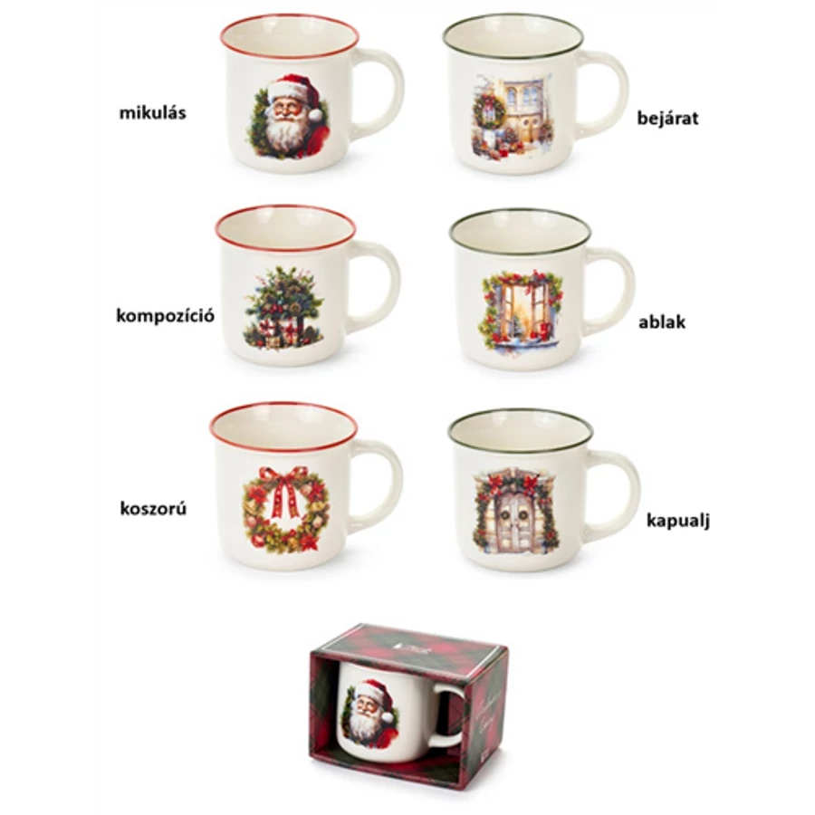 Porcelánbögre skótkockás dobozban, 9,4x7,2x8,7cm, Christmas is coming, kompozíció, N.S.BGQ251901C