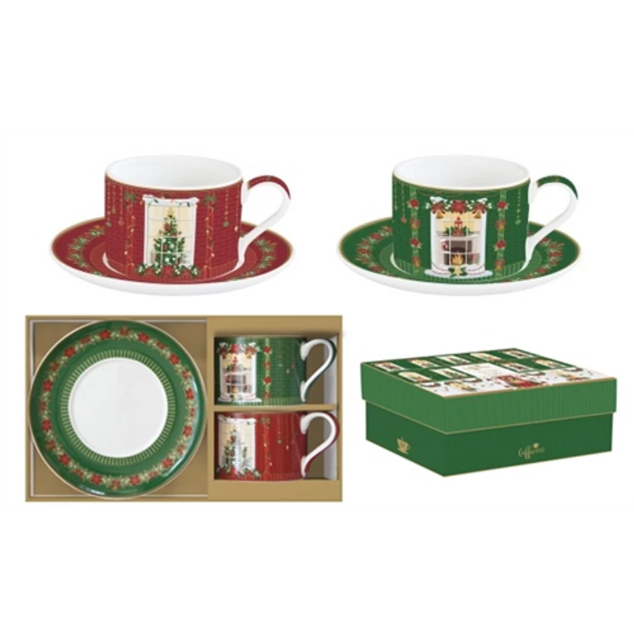 Porceláncsésze+alj 240ml, 2 személyes, dobozban, Coffee Mania, Christmas Joy, R2S.132CJOY